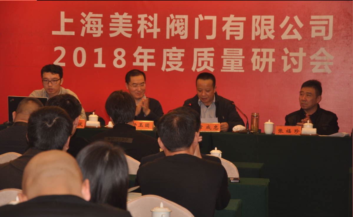 上海美科阀门有限公司于2017年12月20日在上海嘉定区召开了2017年度质量工作研讨会。公司董事长章成忠(中间位置)、温州办事处张福珍(右二)、王军国(右一)、总经理杨玉团(左二)和总经理助理章晓波(左一)参加的此次质量研讨会。